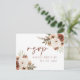 Boho Elegant Floral Wedding Wedding Website Enclosure Card RSVP beige flowers with sage green Elegant Floral Wedding RSVP postcard Boho Chick Ivory with its fall terracotta and beige palette and delicate botanical watercolor flowers is a perfect way to invite your family to celebrate your wedding day. Boho Font lettering is a terracotta but can be changed to your wedding colours. The soft pastel colours of RSVP postcard are a quiet ode to nature and the changing of seasons. Both the front and back of these custom wedding RSVP postcard provide you with plenty of space for all of your wedding details or just add a your photo. Personalise this wedding invitation enclouser RSVP postcard easily and quickly, simply press the customise it button to further re-arrange and format the style and placement of the text. Come summer, spring or fall , these modern wedding invitation reception card can add to that beauty and sparkle to your big day! Category: fall wedding invitation enclouser cards; RSVP postcards, please reply cards boho chick kindly reply cards beige ivory watercolor invites RSVP postcard Colours: ivory quince colour theme: beige, terracotta, pale copper, ivory, white, ecru, sage green, black and white. You can even adjust the entire watercolor flowers theme of the card itself by clicking on the filtres on the top of menu. If you would like this design on another product, or need help in any way, please contact me through my store.