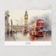 Postcard with Big Ben and red bus in London