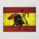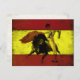 Postcard with matador and bull on dirty old Spanish flag. We change and add both text and colours, as well as size and placement, all upon request. Contact us with your unique needs and we do the rest!