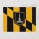 Crafted with meticulous attention to detail, this postcard proudly showcases the iconic flag of Baltimore, with its striking design featuring a bold black background adorned with the city's iconic yellow and white chequered pattern and the crest of Lord Baltimore.