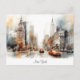 Postcard with New York City, Manhattan. Beautiful painted downtown with yellow cabs.