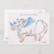 This postcard features an original drawing by artist Jayne Somogy ("Somogyi") of a whimsical, stylised rhinoceros in blue and brown.