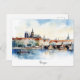Postcard with Prague, Czech Republic. Beautiful painted old town.