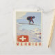 Cool postcard with vintage ski print from Verbier, Switzerland. Send your ski bum greetings with a nice print from one of the best ski resorts in the Swiss alps if not in the world. We change and add both text and colours, as well as size and placement, all upon request. Contact us with your unique needs and we do the rest!