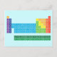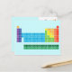 Postcard featuring periodic table of the elements, with each element group marked in rainbow colours.