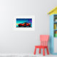 Poster shown with a photo print of a sleek sports car.