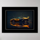 Poster shown with a photo print of a sleek sports car.