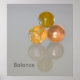 Three orange glass marbles balanced atop one another, reflected in table surface.