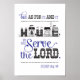 Trendy christian poster with the bible scripture: But for me and my house, we will serve the Lord. Joshua 24:15. Make a statement with this trendy black & white print! With hand lettering and a graphic illustration of houses. Also great as a christian wedding, housewarming or anniversary gift!