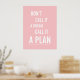 "Don't call it a dream, call it a plan" motivational quote printed in white text on a cotton candy pink background.