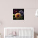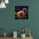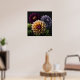 Poster is shown with a photo art print of beautiful dahlia flowers.