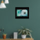 Poster shown with a photo print of a dandelion on a black background.