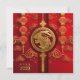 2023 is the Chinese New Year of the Rabbit! Design features gold rabbit on red with lanterns and clouds.