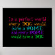 This poster has text design every home should have a dog in bright bold colors for wall art decor in home or office.