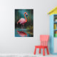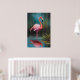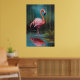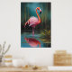 An HD portrait oil painting style poster depicting a specimen of a Flamingo on the waters of a lake