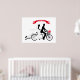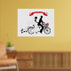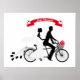 Poster just married with bride and groom on tandem bicycle, wedding gift, home decoration