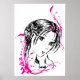 Pairing a sketch of a tropical anime-style female with vector orchids and embellishments, this exudes a simple, dreamy grace.