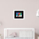 Poster shown with a photo print of beautiful parrot on a black background.