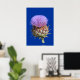 A photograph of a purple thistle in bloom in centre of dark blue background. Great for someone with Scottish ancestry.