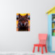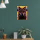 Poster shown with a photo print of a wild wolf in the water in Yellowstone National Park, USA.