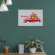 Posters for Merry Christmas, with a cute illustration of a festively decorated car with fir branches and boxes with presents on the roof.
