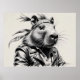 This image depicts a strikingly cool anthropomorphic capybara, styled like a rebel biker. The character sports a rugged leather jacket and a patterned bandanna, exuding charisma, confidence, and a bit of a wild spirit.