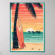 Capture the golden age of surfing with this vintage beach surf poster — retro palettes of coral, teal, and sand evoke warm nostalgia. Great for coastal homes, surf shops, or casual decor. Offered in multiple sizes and materials for optimal display.