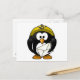 This cute little penguin is a postman penguin. He wears a yellow hat and carries a mail envelope to deliver.