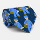 This tie is decorated with multiple images of a toy postman on a dark blue background.