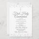 Silver First Holy Communion postponed announcement card featuring delicate silver stardust, you can personalise with your special first holy communion information in chic silver text. Designed by Thisisnotme©