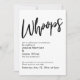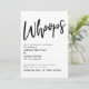 This suite's distinction is due to the bold, casual handwritten script font used for accent phrases. If you're in the position of needing to inform your wedding guests that you've had to change your big date, here is a humourous option. In this piece, the hand-lettered script font was used to create a simple graphic depicting the word "Whoops". Use the template fields to add your personal details and make this modern design your own. The white background can be changed to any colour you prefer. Please reach out with any special requests or for customising assistance. // 105 //