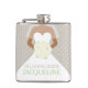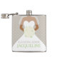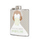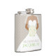 Elegant graphic bride with veil holding a posy of white green stylised roses wedding hip flask. Reads Blushing Bride Jacqueline. Personalise with your own name and title or words to help calm the bride on her big day. Also a great gift idea for bridal showers, hen nights or wedding rehearsals. Art and design by www.mylittleedenweddings.com