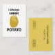 Potato I Always Shine Funny Potato Business Card original design by Nisha Prabhu. Fully Customisable. Personalise with your details. Make an unforgettable impression with this delightfully humourous and eye-catching business card that says "Potato I Always Shine"! Perfect for anyone looking to add a dash of fun to their networking game, this card is not just about business—it's about personality! Stand out from the crowd with a quirky potato illustration that captures attention and sparks laughter. The witty phrase is a conversation starter, making it easier to connect with potential clients and collaborators. Perfect For: Creative professionals, Food enthusiasts, Farmers’ market vendors. Whether you're at a networking event, handing out cards at a food festival, or just spreading a little joy, this business card is sure to put a smile on people's faces.