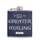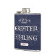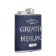 The flask itself is fine. It’s a cheap flask, obviously bought in bulk, however am prepared to overlook that. Given that it is a personalized item, I would have liked to have seen gift boxing instead of the generic packaging. Terrible printing, and/or quality. It’s a cheap, tacky vinyl. It is not cut straight and is also applied in a way that it is overhanging the bottom, causing the glue to catch on items and it will eventually roll and tear, damaging the wrap.