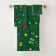 Potpourri of Christmas Elements on GREEN Bath Towel Set