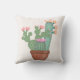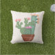 This trendy design features a large watercolor painting of three flowering cactus plants, including a prickly pear, in a brown terra cotta pot. The background is a pale shade of blush. The perfect pillow for your patio or deck!