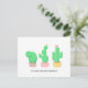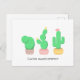 Vector illustration of a group of bright green cactus plants in clay pots. The message reads “Cactus makes perfect.”