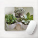 This mouse pad features a photo of three cute potted succulents in white containers with a seashell. Photo: © Z. Novosel