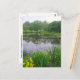 Blooming iris hug the shore of Potter Lake, while trees cast their reflection over the water lilies.