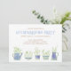 Plant illustrations in festive violet blue watercolor pots, with whimsical text and a watercolor pattern on the reverse.