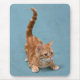 Adorable kitten at with tail in the air, looking ready to pounce.