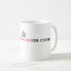 Simple white ceramic mug with text. Dishwasher safe.
