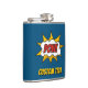 The flask itself is fine. It’s a cheap flask, obviously bought in bulk, however am prepared to overlook that. Given that it is a personalized item, I would have liked to have seen gift boxing instead of the generic packaging. Terrible printing, and/or quality. It’s a cheap, tacky vinyl. It is not cut straight and is also applied in a way that it is overhanging the bottom, causing the glue to catch on items and it will eventually roll and tear, damaging the wrap.