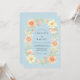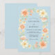 This design features a serene powder blue background adorned with a lush arrangement of watercolor florals. Delicate peach roses and apricot blossoms are paired with pale yellow wildflowers and soft green leaves. The overall aesthetic evokes a romantic spring atmosphere, perfect for a graceful outdoor event or an ethereal morning ceremony.
