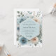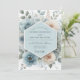 This design features a soft array of powder blue and blush-toned blooms with delicate greenery accents. The artistic floral arrangement evokes a gentle, romantic mood.