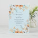 This design features a soft powder blue backdrop adorned with lush watercolor arrangements of ochre and amber blossoms. Delicate white anemones and golden yellow roses create a romantic and airy atmosphere. The painterly teal foliage adds a touch of nature-inspired elegance.