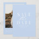 This formal save the date design features a soft sky, powder blue colour scheme, one of your beautiful engagement photos and a modern QR code option to deliver your upcoming wedding information. This design is fully customisable with your text and URL for the QR code. You can find other colours of this design in my Zazzle store, Ashlee Townsend Design.