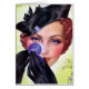 Adapted vintage magazine cover. Light green background with beautiful short haired read head in black hat and gloves powering her nose.