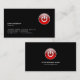 Customisable business card template with hi-tech theme featuring a glossy red power button on black. Suitable for computer technician, web designer, electronics, technology or other related business types or occupations.