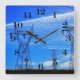 Power lines in blue sky square wall clock